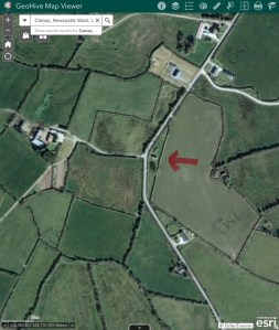 Bridget        Halpin’s small farm of ten acres, three roods and thirteen perches, which was so vital in the early development of one of our greatest poets. This view is taken from a Geohive Hub aerial view taken in 2006.