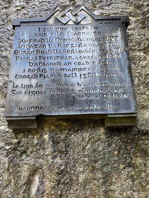 Hartnett’s grave in Calvary Cemetery, Churchtown, Newcastle West. The inscription reads: ‘Beadsa ann d’anneoin an bháis, mar labhraíonn dúch is labhraíonn pár’, (‘I will be there in spite of death, for ink speaks and paper speaks.’